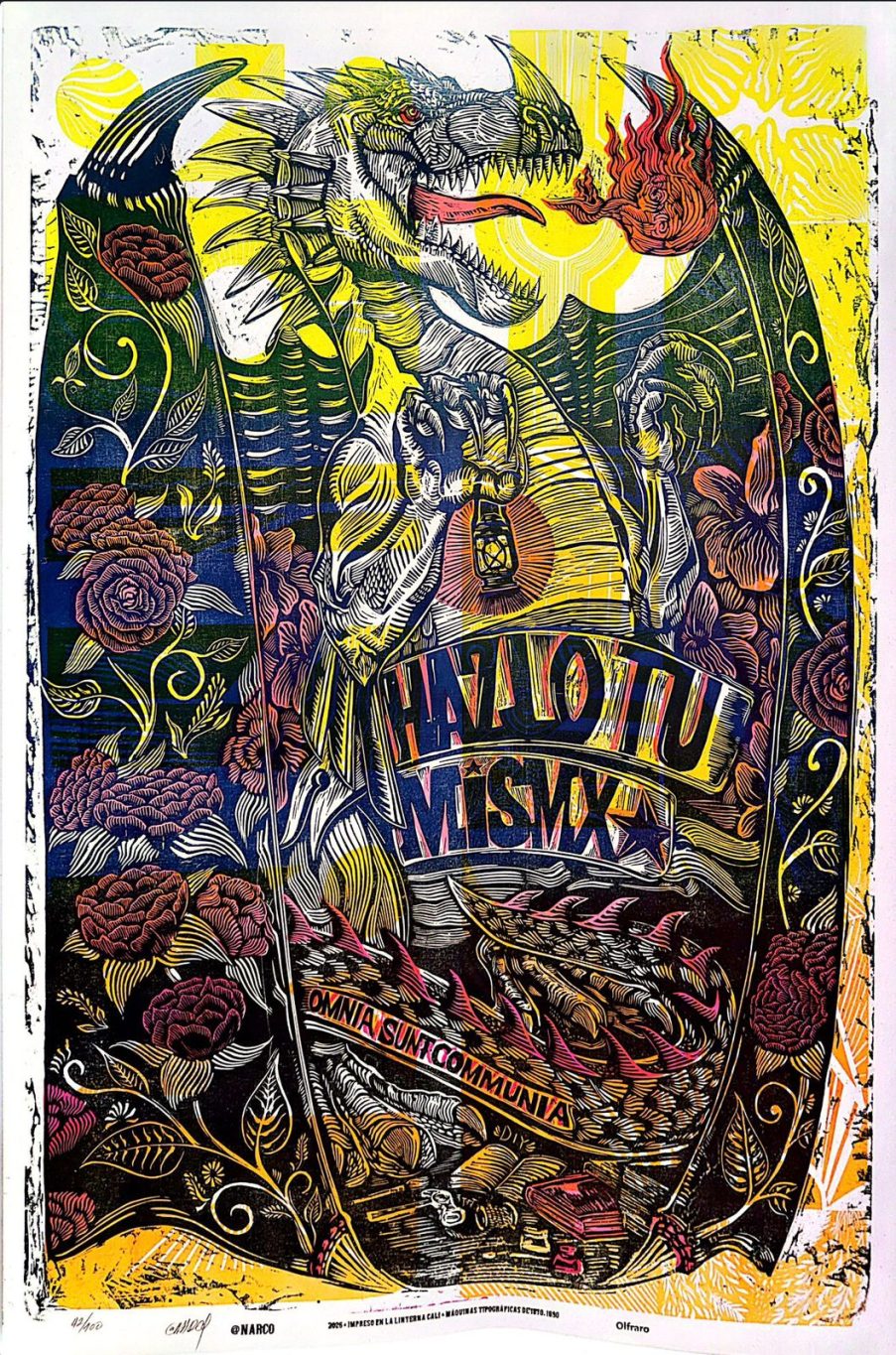 Esta colección es un manifiesto impreso que recorre la gráfica como herramienta de memoria y resistencia, el rugido de lo que no se puede domesticar. Tinta jaguar es un acto gráfico de insurgencia simbólica: un llamado a recordar que Latinoamérica no solo existe, sino que también expresa, comparte e imprime gráfica popular.