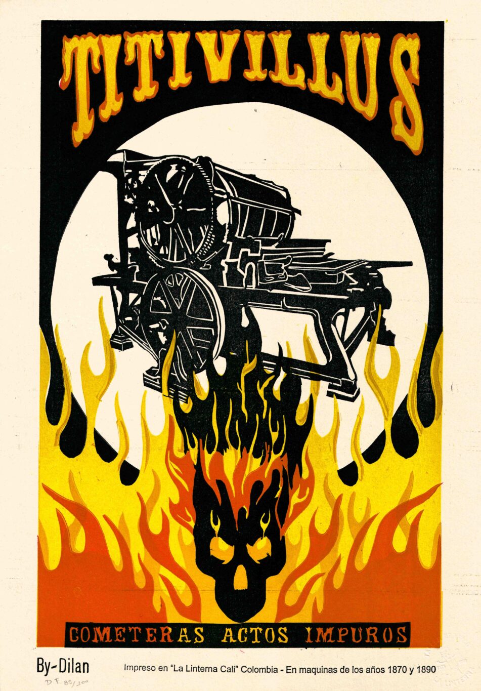 Cartel impreso en Earth Pact de 150 gramos, grabado en linóleo por los maestros de la linterna e impreso en maquinas de los años 1870 y 1890.