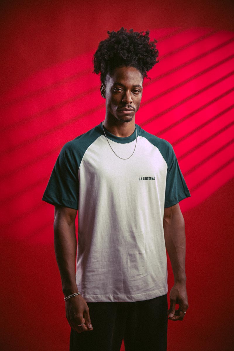 Confeccionada en algodón grueso de 220 gramos, tiene un fit regular clásico y cómodo, ideal para todos los días. El cuerpo es color crudo y las mangas raglán en verde oscuro, con un cuello en rib del mismo tono que resalta el contraste con elegancia y firmeza.