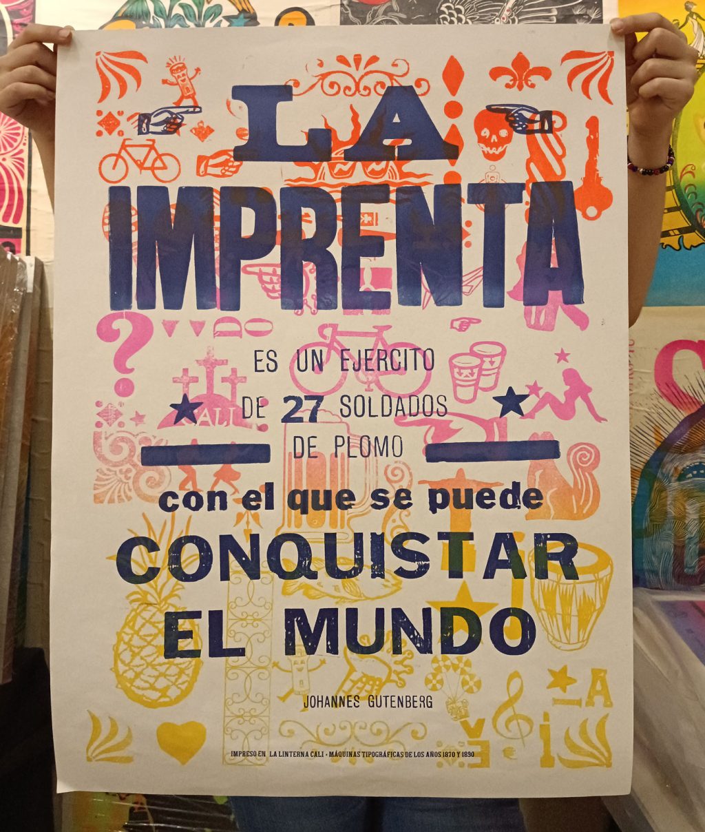 Cartel impreso en papel Earth Pact de 150 gramos, tallado sobre linóleo, por los maestros del taller e impreso en maquinas de los años 1870 y 1890.