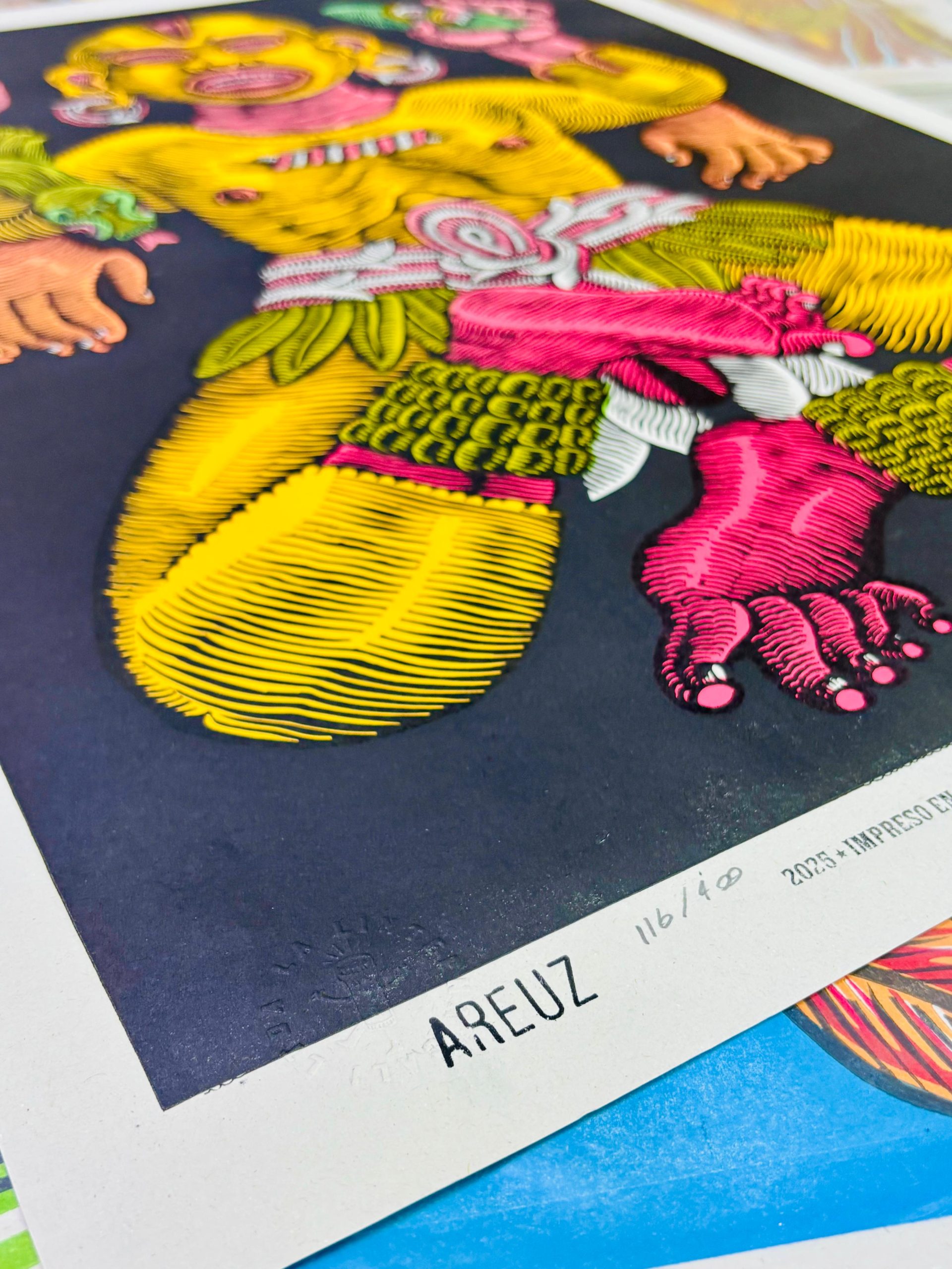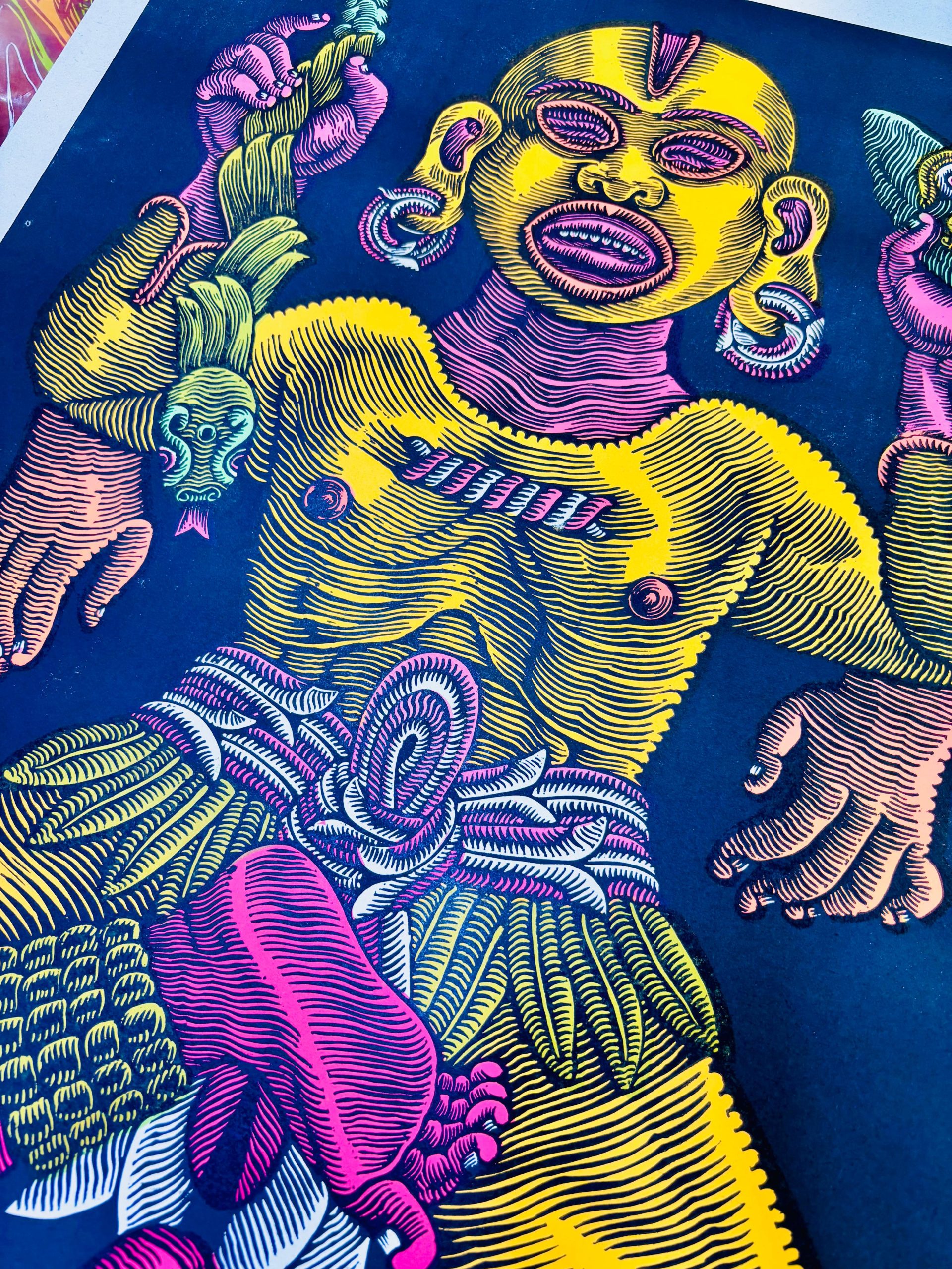 es una colección de linógrafas talladas a mano que rugen desde lo más profundo de la gráfica latinoamericana. En esta primera edición, seis artistas mexicanos trazan el camino de la fuerza simbólica del JAGUAR , símbolo ancestral de resistencia, visión y un corazón indomable.