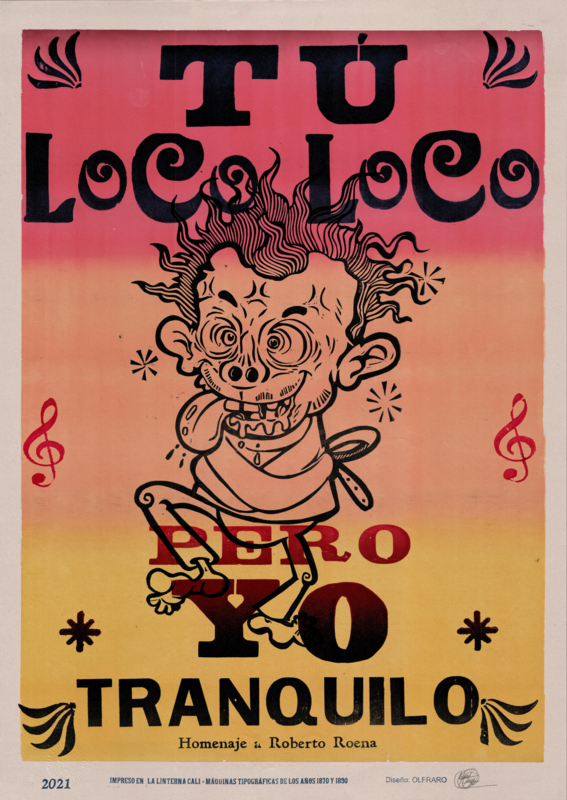cartel impreso en papel earh pact de 150 gramos, Tallado sobre linoleo, “Artistas Recidentes” e impreso en maquinas de los años 1870 y 1890